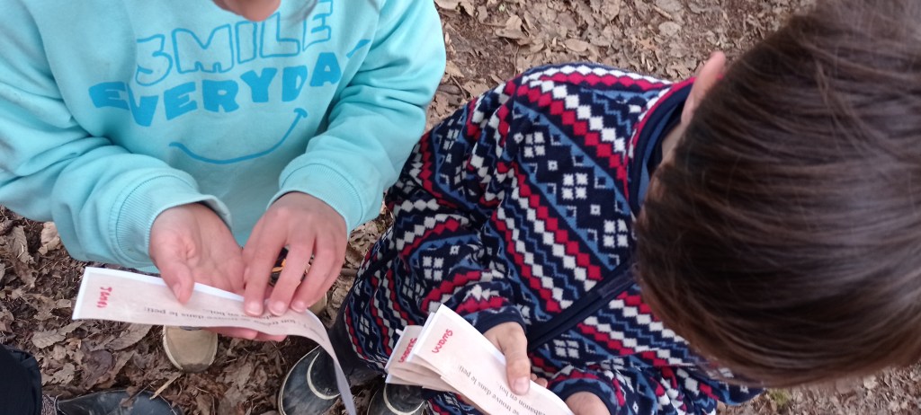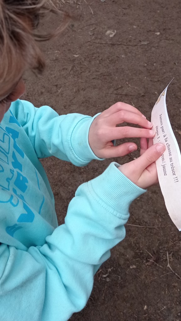 Si l’étude du code se fait en classe, je leur propose à l’extérieur une activité ludique : une chasse au trésor.