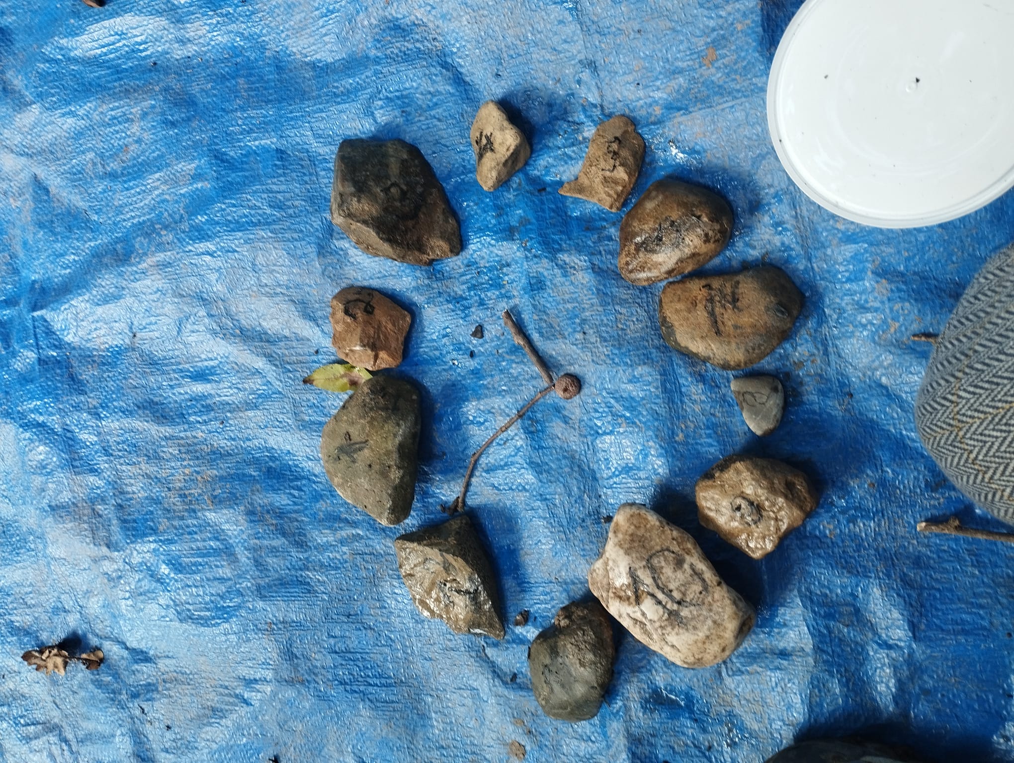 Nous avons effectué une première séance de découverte en nature avec la création d’une horloge avec des matériaux naturels :